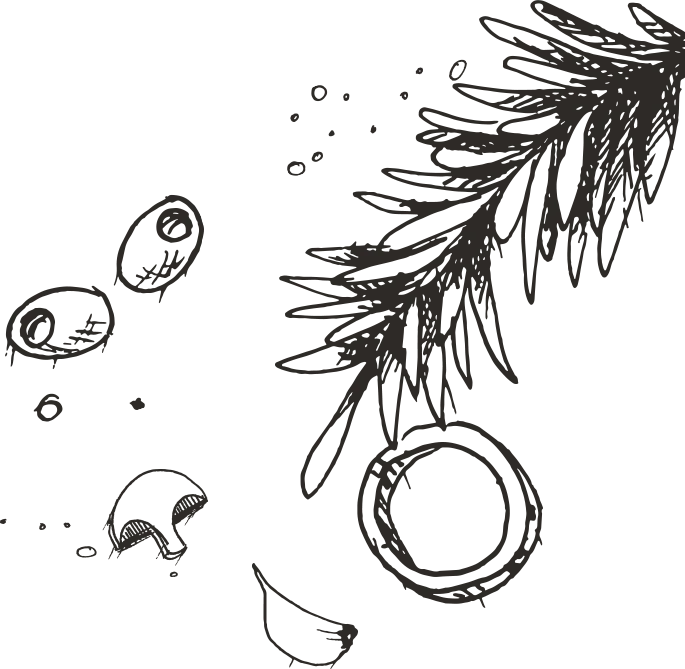 Vegetables, cheeses, ground meats, tomato sauce, seasonings and spices